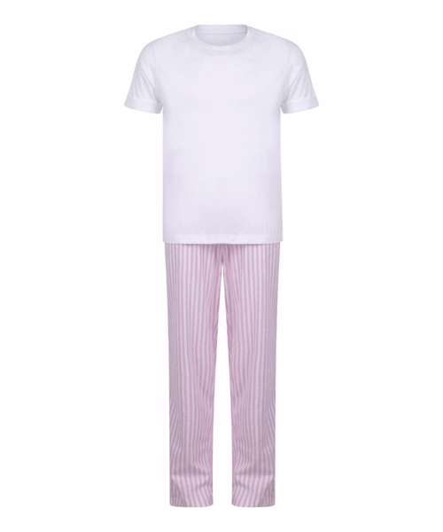 Relax in style with the soft and lightweight pyjama set featuring a white, comfortable loose fit t-shirt and contrast pants. The pants have an elasticated waistband for comfort.