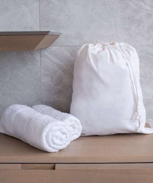 Looking for something to tidy your laundry into? The laundry bag is designed blank and available in White, which provides a variety of personalisation and branding prospects. With drawstrings to close, this 100% cotton, is perfect for keeping your belongings tidy.