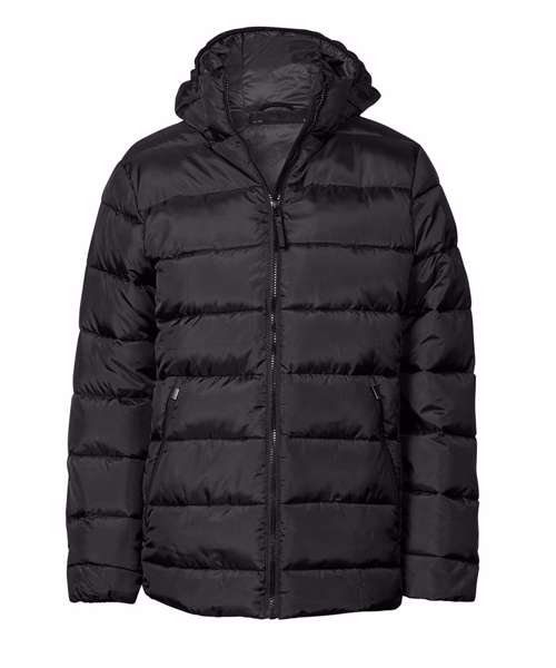 Fixed hood. Two practical front pockets. Inner pocket. Adjustable hem with drawstring/stopper. SBS zips. Prepared for embroidery. Certified recycled polyester.