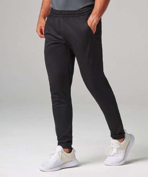 Slim tapped leg, twin stitched cuff with zip. 2 X side entry pockets, fully elasticated waistband with inner drawcord.