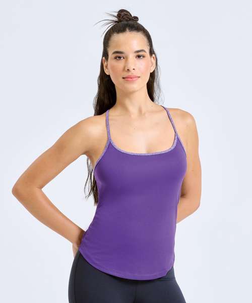 Wicking fabric. Scoop neck. Flattering cut for the female figure. Contrast spaghetti straps, racer back. We recommend using block out vinyl and inks.Product contains no branded neck or waist label. Removable Kimble or looped garment tags. Inner seam label holds important product information on one label with a second label containing brand information which can be cut-away.