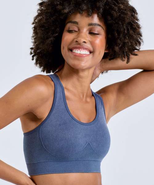 The TriDri® seamless '3D fit' multi-sport denim look bra is made with seamless technology ensuring comfort and freedom of movement whatever your sport.