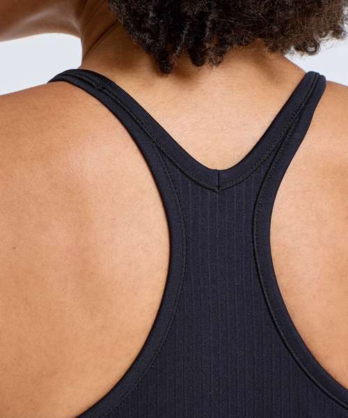 Seamless vest. Contrast detailing. Body sculpting design detailing. Racerback. Hidden sports bra inner with removable bra pads for additional support. Ribbed stretch fabric. Medium impact. We recommend using block out vinyl and inks.Product contains no branded neck or waist label. Removable Kimble or looped garment tags. Inner seam label holds important product information on one label with a second label containing brand information which can be cut-away.