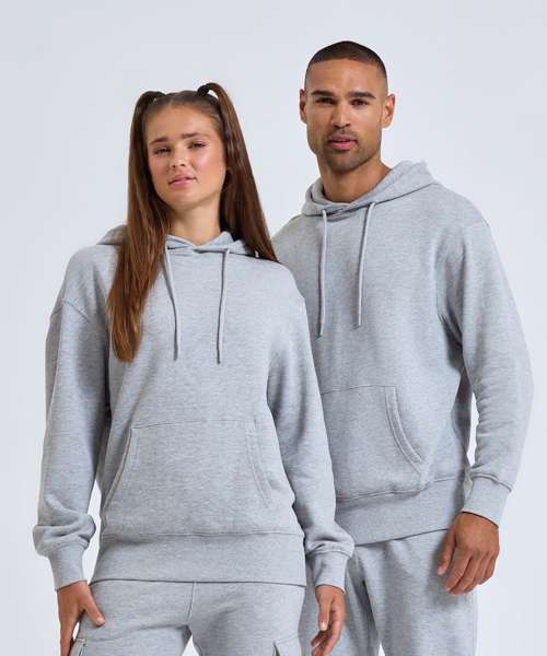 Recycled polyester. Kangaroo pocket. Brushed-back fleece. Ribbed cuffs and hem. Twin-needle detail. Buttonhole stitched eyelets. Cords with painted metal ends. Dropped shoulder design. Unisex fit. Soft feel. Inner brushed fleece. We recommend using block out vinyl and inks. Product contains no branded neck or waist label. Removable Kimble or looped garment tags. Inner seam label holds important product information on one label with a second label containing brand information which can be cut-away.