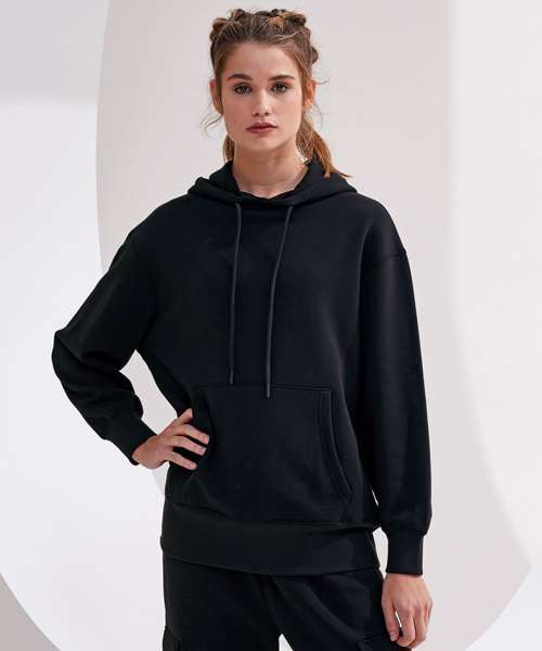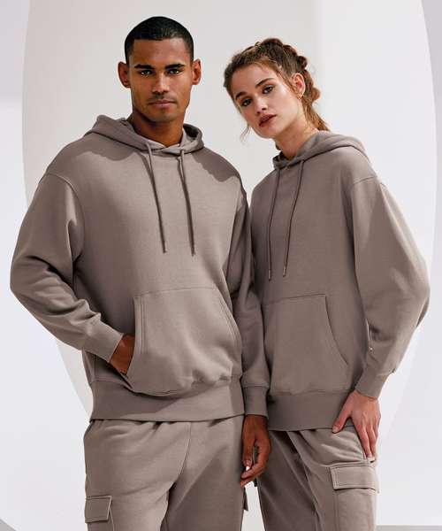 Recycled polyester. Kangaroo pocket. Brushed-back fleece. Ribbed cuffs and hem. Twin-needle detail. Buttonhole stitched eyelets. Cords with painted metal ends. Dropped shoulder design. Unisex fit. Soft feel. Inner brushed fleece. We recommend using block out vinyl and inks. Product contains no branded neck or waist label. Removable Kimble or looped garment tags. Inner seam label holds important product information on one label with a second label containing brand information which can be cut-away.