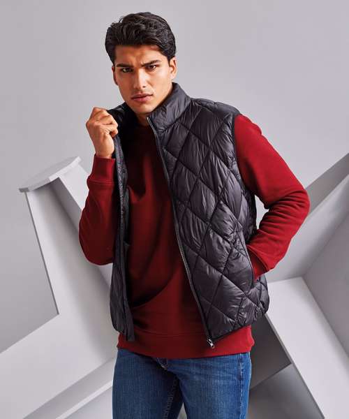 The diamond pane padded gilet is a diamond-quilted design that offers a streamlined fit and fastens with a self-coloured zip through the centre front. Elasticated armholes and hem enhance wearing comfort, while two welted pockets are ideal for keeping essential items close.