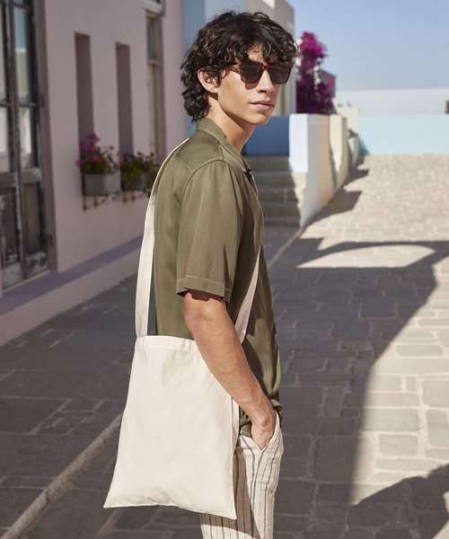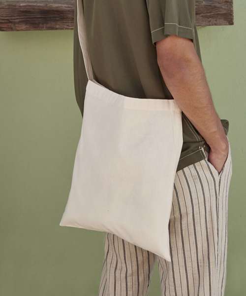 Self fabric shoulder strap. The perfect 'Hands free' Bag for life.Handle length 118cm.