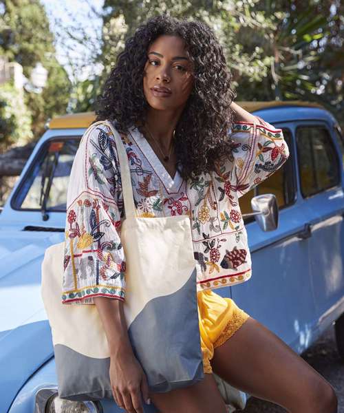 WM235: Organic cotton wave print maxi tote