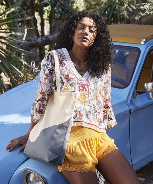 The Organic cotton wave print maxi tote combines sustainability with laidback style. Made from organic cotton, featuring an abstract swirl pattern, this tote bag provides the perfect canvas for personal decoration. Whether for daily errands or beach outings, it offers an eco-friendly and stylish solution for everyday needs.