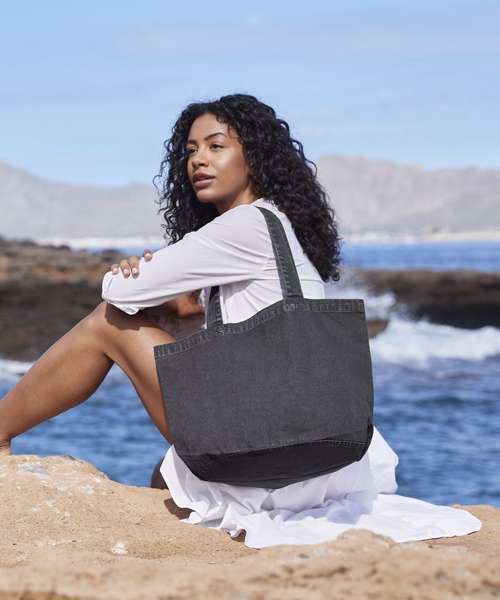 Made from 100% pre-consumer recycled cotton. Contains 100% certified recycled cotton. Washed finish. Oval base design. Twin-needle stitched seams. Self-fabric carry handles. Can be carried by hand or over the shoulder. CutAway label for ease of rebranding. Due to the garment-dyeing process, each colour is unique and may vary, with potential fading over time.
