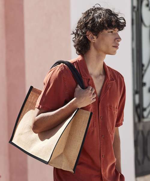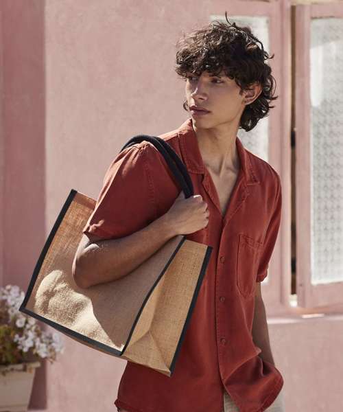 Every piece in the unlaminated Natural Starched Jute collection has angular edges and a sturdy construction for more boxy styling and structured storage. The fabric is tactile to the touch and organic in aesthetic, yet still robust and reliable. This classic shopper will look the part, whether browsing high street stores or picking up groceries at a farm shop. Contrast colour handles add an extra touch of rustic charm.