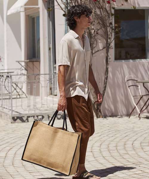 Every piece in the unlaminated Natural Starched Jute collection has angular edges and a sturdy construction for more boxy styling and structured storage. The fabric is tactile to the touch and organic in aesthetic, yet still robust and reliable. This market shopper is made for trips to the local farmers’ market or travelling to markets abroad, with a generous capacity and comfortable carry handles. Contrast colours add an extra touch of rustic charm.