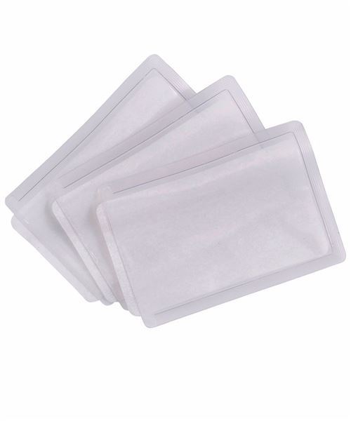 Hardwearing and weatherproof Heat Seal Card Holders. One simple heat-seal operation to apply (130°C for 10 seconds). ID04 holds card sizes up to 85mm (L) x 55mm (W) (credit card size). ID05 holds card sizes up to 250mm (L) x 100mm (W). ID06 holds card sizes up to 300mm (L) x 100mm (W). Ideal for high visibility coats and waistcoats etc. Washable at max. 40°C. Sold in packs of 50.