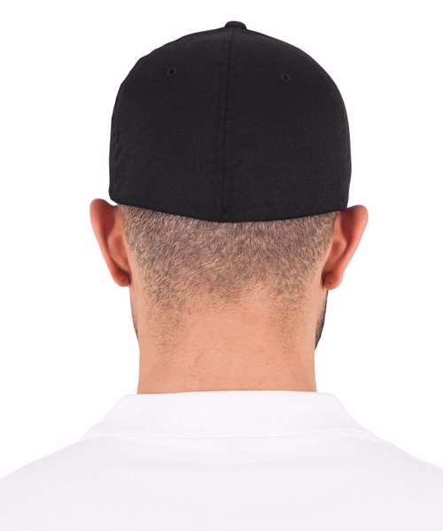 The carbon Flexfit cap has an athletic shape, hard buckram and carbon style visor.