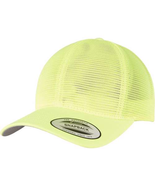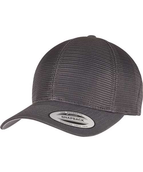Omnimesh cap with color-matching snapback closure, one size fits all, made of cotton and polyester, breathable material, 8-fold quilted, pre-bent visor.